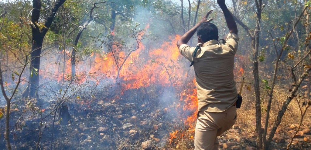 Forest department’s personnel throughout the country fights these forest fires very bravely. Fires are mainly extinguished by traditional methods (like beating the fire with a bundle of branches) or using modern equipment, and with the help of local communities. It is a highly risky job in some of the most difficult terrains of the country. Many green hero’s lives are lost every year.
