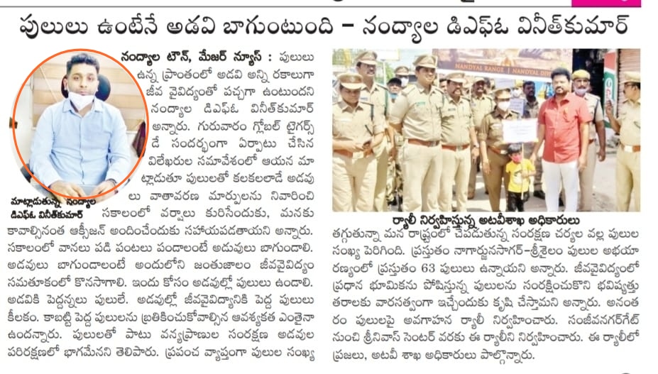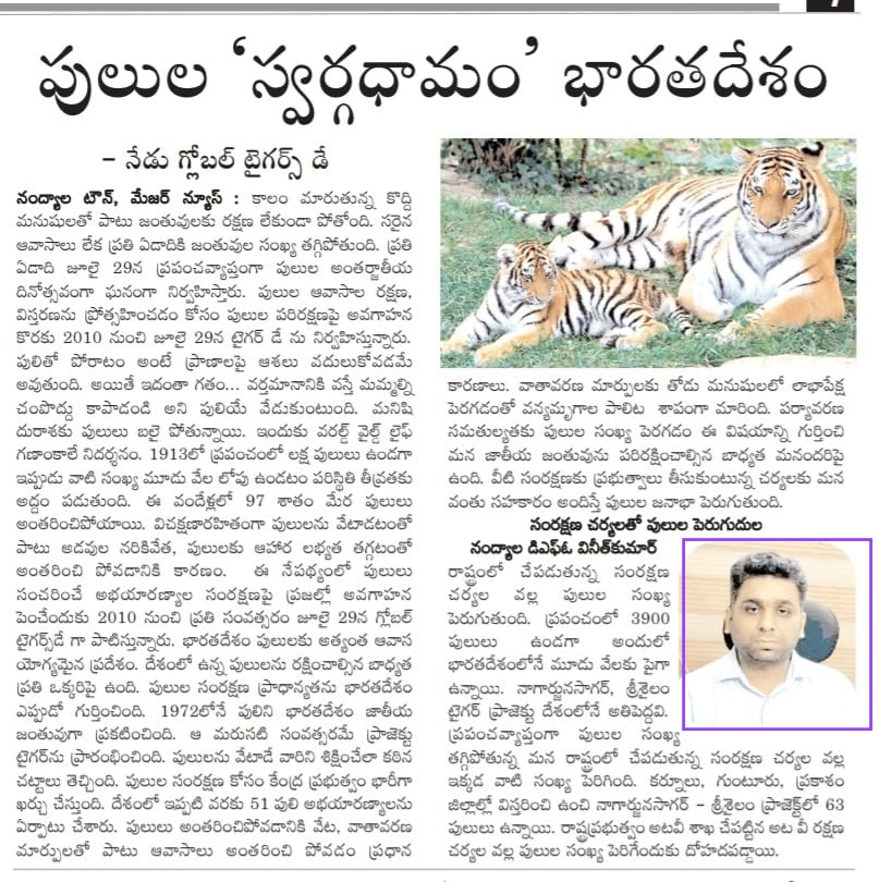 DFO Nandyal (NSTR), AP, Sh. Vineet Kumar IFS says in our conversation, that Public Participation is a must. Because forests are an open resource. We get air, water, wood, food everything from them, so it’s our responsibility to protect it, its animals, and other species. Regarding roads & railways kills, these departments should also take responsibility. In the forest department, we are regularly checking and filling water pits inside the forest during the summer season especially, and regular protection is done by our frontline staff. If any discrepancy or illegal activity is found in the forest area, strict action should have been taken. I have also done district official meetings regarding such accidents, wrote to railways and road department, also doing protection campaigns in division and awareness & training programs for railways staff also. Recently an awareness campaign on ‘saving wildlife’ was organized, by painting pugmarks on roads and drawing wildlife signboards, etc., which has become quite successful, others are also following our idea in their areas. Tiger is an important species. Tiger and other wildlife are important for the ecosystem so their protection should never be compromised.