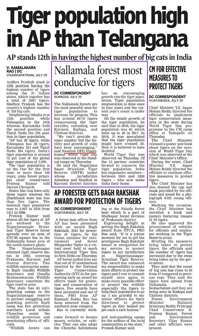 Say ‘NO’ to tigers & other wildlife trades. Also, refuse to buy tiger parts and articles/items prepared from tiger derivatives. If you know of any information on poaching or trade of illegal wildlife, inform the FD as soon as possible. We as responsible citizens should also understand the working and technicalities of FD in protection. Some local communities are also participating in this great objective for decades. APFD also took the initiative to involve local communities in protection. Chenchu– the primitive tribals, are playing a very important role in tiger protection. There has been a win-win situation for both the forest department and the tribal community. Please check the link below-