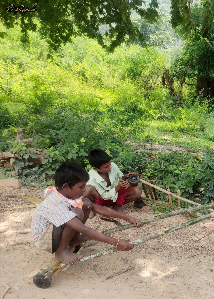 घर मे पड़ी टूटी चप्पलो से गाड़ी बनाना। कंचे खेलना, गिल्ली डंडे, पीठ्ठु, पतंग उड़ाना, पकडम पकड़ाई, आई स्पाइ, उचं-नीच का पापड़, पोषम पा, बर्फ-पानी खेलना, बारिश मे नहाना, कागज की नाव चलाना, कंकड़ पत्थर के गिट्टे, लटटू बनाना, गलियो मे क्रिकेट, पेपर या प्लास्टिक की बॉल बनाना, कॉमिक्स की किताबे पढ़ना, कैसेट सुनना, ट्रंप कार्ड्स, WWE, पोकेमोन कार्ड्स, सुपर मारियो वीडियो गेम, पेन, थंब फाइट, थ्रेड गेम, बबल गम टैटूज बनाना, एकड़ बकड़ बॉम्बे बो, तोता उड़ मैना उड़ खेलना, रस्सी कूदना, गोल्डा मारना, जमीन पे चाक से खाली खाने बनाके खेलना, कागज की हवाईजहाज़, पंखे, सांप सीढ़ी, मिट्टी के घर, पत्तियो से तरह तरह के आभूषण, खिलोने और कागज की पर्चियां बनाके चोर सिपाही खेलना। दिनभर ‘घर घर’ खेलना, गुडियो को सजाना, कोई रोकने टोकने वाला नही। और वो स्पीड से गाने का कंपिटिशन “खड़क सिंह के खड़कने से खड़कती है खिड़कियां; चंदू के चाचा ने, चंदू की चाची को, चांदनी चौक मे, चांदी की चमच से चटनी चटाई”। खो-खो, कबड्डी की धराचौकड़ी, कोई हार जीत का दुख नहीं।