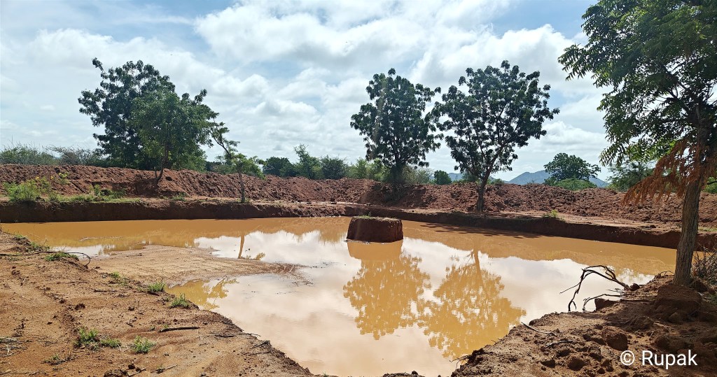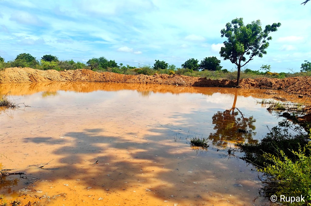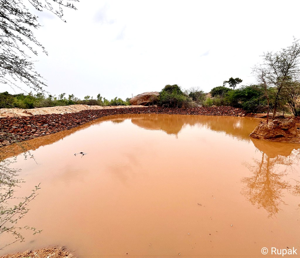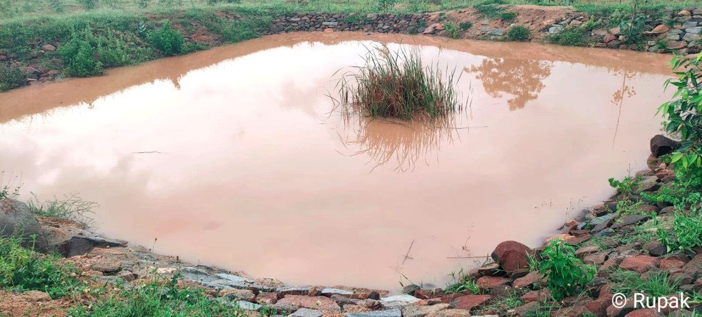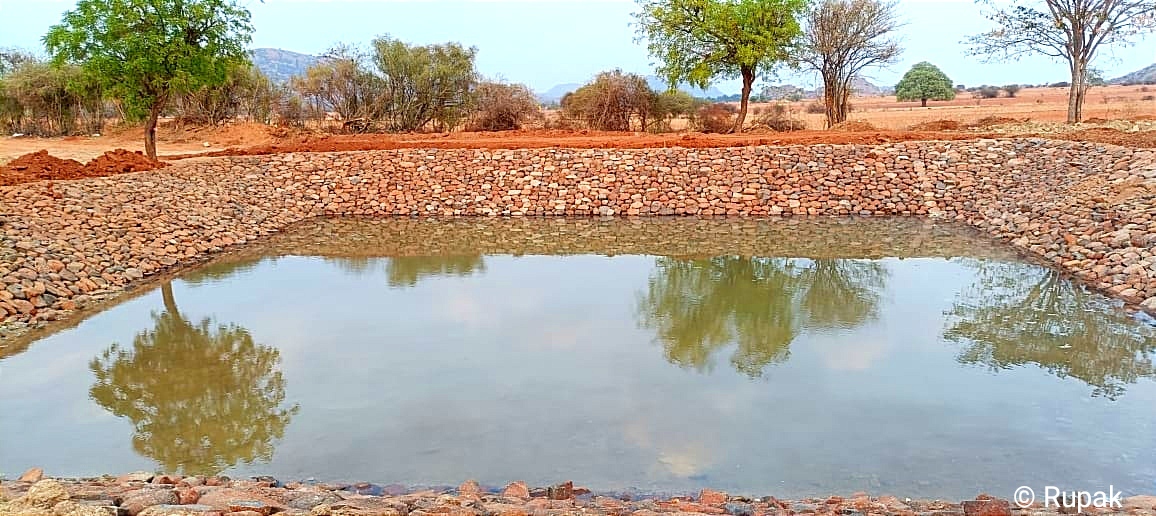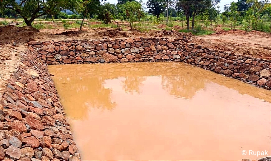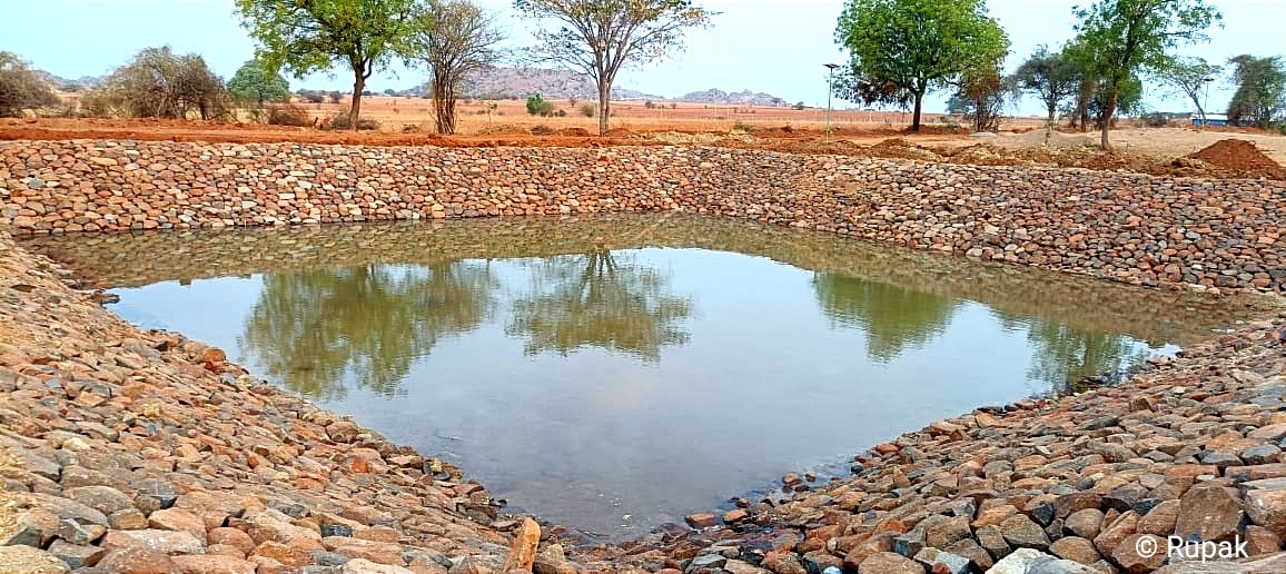 During field visits, Rupak observed the old dry Bawdi and polluted water bodies. We identified few bodies which were having water storage in earlier times however due to blockage of channels have filled with silt and have became garbage dump yard. We removed the garbage, the exotic vegetation and created a fence around the area first from letting people dump waste further. Later on desiltation was done and further deepening to increase the storage. Further using the local communities and local stone we strengthen the banks and bunds by pitching through the special skills of local stone workers. We utilised the skills of stone workers of Vadde community which are now getting diminished due to increasing use of concrete and burnt bricks.