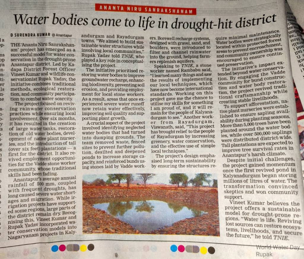 https://thebetterindia.com/427160/vinnet-kumar-ifs-officer-rupak-yadav-revive-water-bodies-in-drought-prone-anatapur-andhra-pradesh/: Ananta Niru Sanrakshanam https://www.facebook.com/100064858355704/posts/1144157827756152/: Ananta Niru Sanrakshanam https://www.linkedin.com/posts/thebetterindia_waterconservation-communityempowerment-sustainabledevelopment-activity-7328337383249076224-H-zH?utm_source=share&utm_medium=member_android&rcm=ACoAADOU7YIB2ejp17X0dTY0HFVWT-3nHOfDIPE: Ananta Niru Sanrakshanam