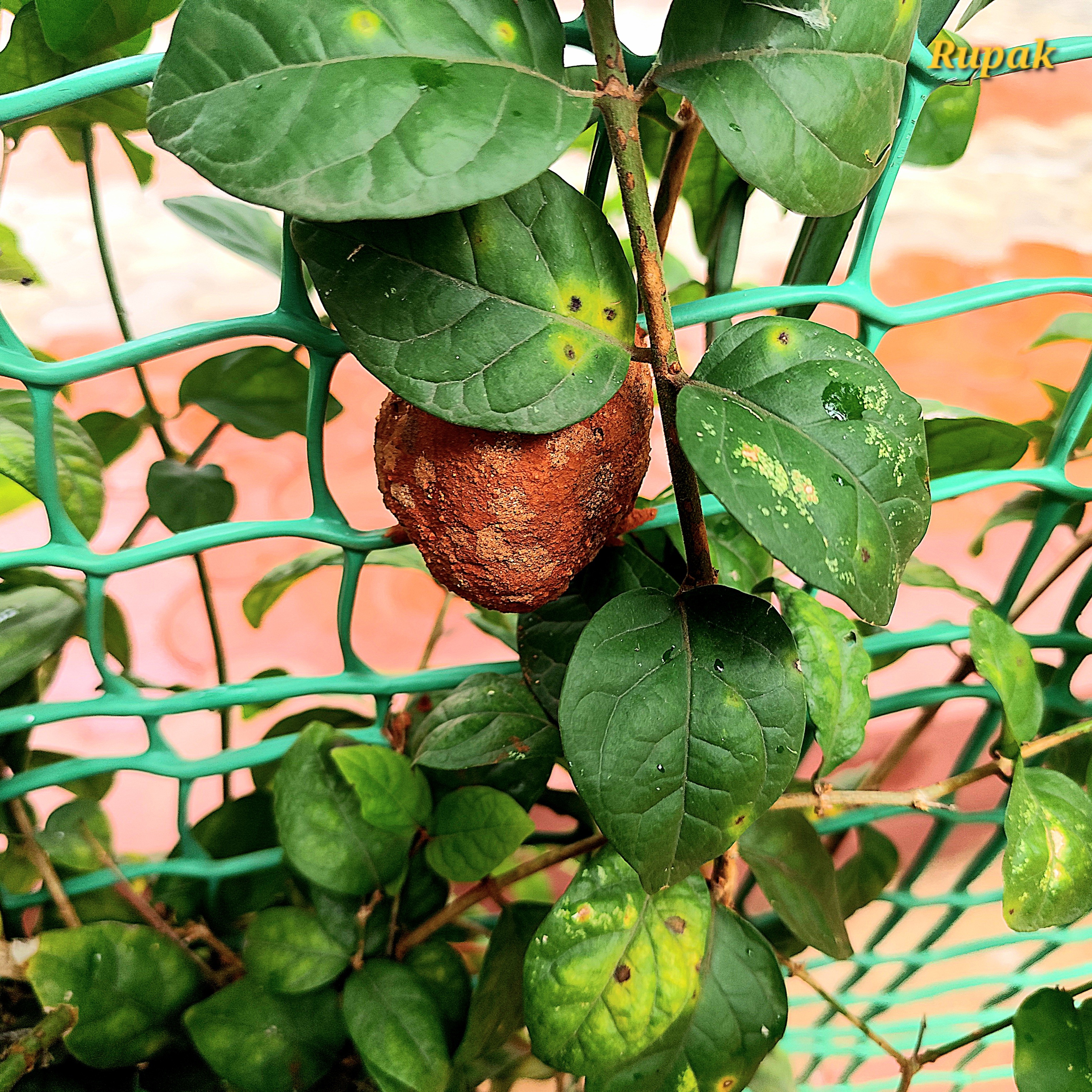 Such distinctive nests built by solitary female wasps such as mud dauber or potter wasp, using mud or clay that resemble small, ceramic jugs or pots on twigs, branches, or plant leaves. Each nest typically contains a single chamber where the female wasp lays one egg and provisions it with paralyzed prey (such as caterpillars, spiders) before sealing it. Sealed once provisioning is complete, serving as a protective chamber for the developing larva.